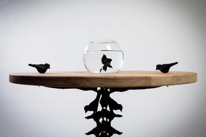While a potted plant in a corner or a trailing plant works well, a unique accent piece that takes inspiration from nature makes for an exquisite touch. For instance this bronze and wood piece,“36 Birds in a Table” includes 33 birds as the stand and 3 birds perched on the table top. You’ve got a conversation piece and fascinating bit of nature rolled into one!